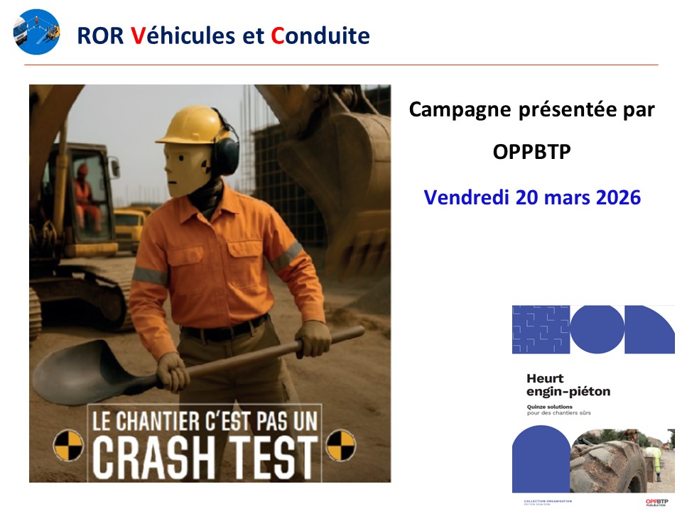 Diaporama présenté les 13 et 20 mars 2026 20 mars 2026 : présence OPPBTP Campagne Prévention ROR Vé...
